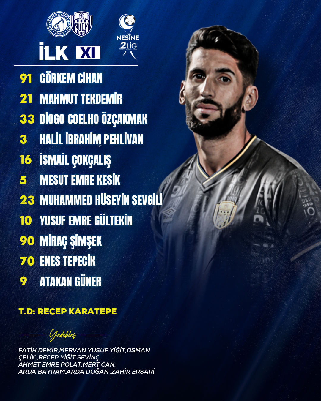 Batman Petrol Spor A.Ş. maçı ilk 11’imiz 💛💙 #Ankaragücü