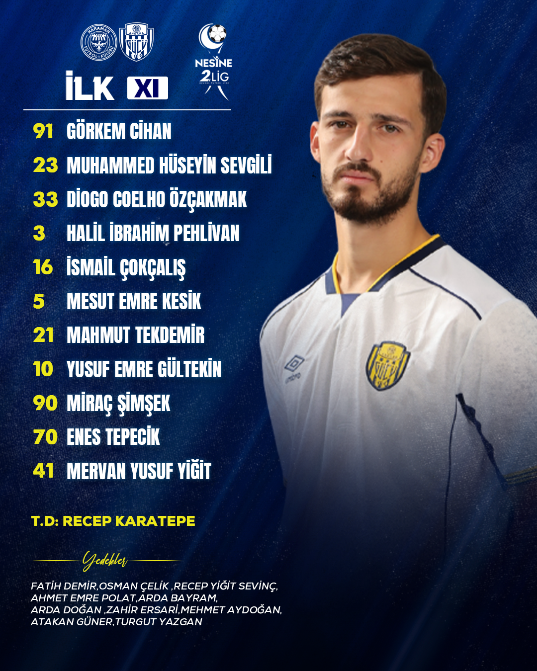 Karaman Futbol Kulübü maçı ilk 11’imiz 💛💙 #Ankaragücü